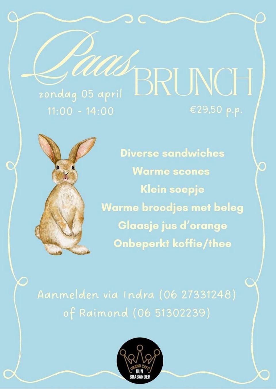 Kom en geniet van een heerlijke Paasbrunch! Aanmelden bij Indra 06-27331248 of Raimond 06-51302239